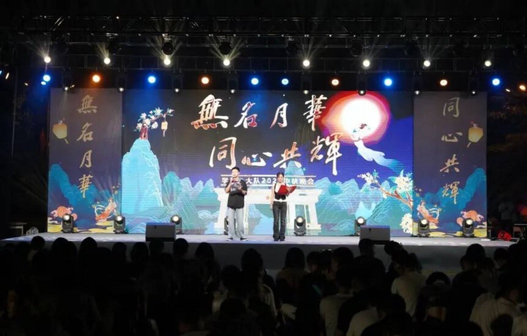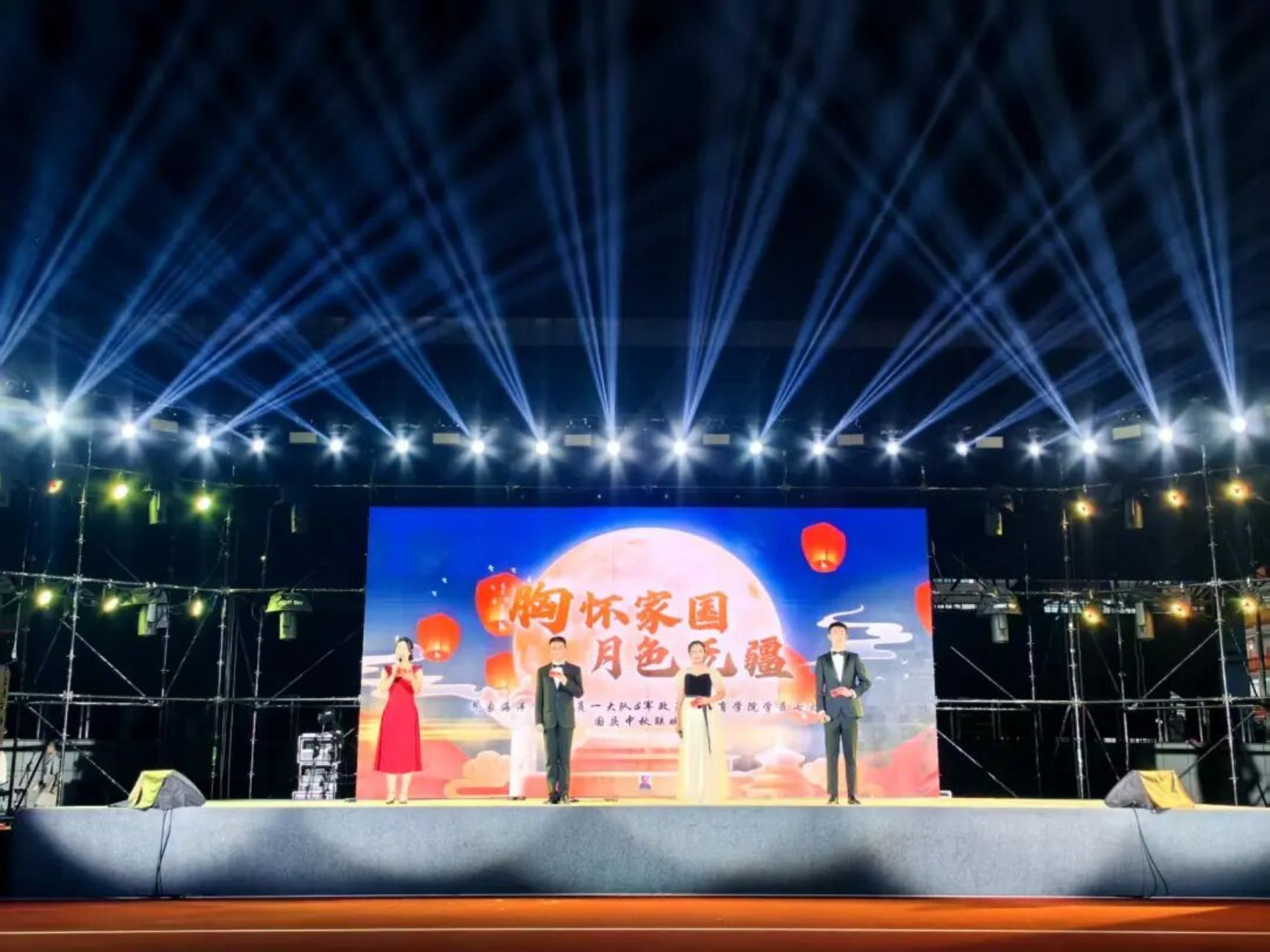 气象海洋学院与军政基础教育学院联动推出的“胸怀家国,月色无疆”国庆中秋联欢晚会拉开帷幕。晚会分为“月华初上·正少年”“家韵悠长·寄情思”“胸怀家国·志无疆”三个篇章,中秋夜的温情与保家卫国的壮志同频共振。