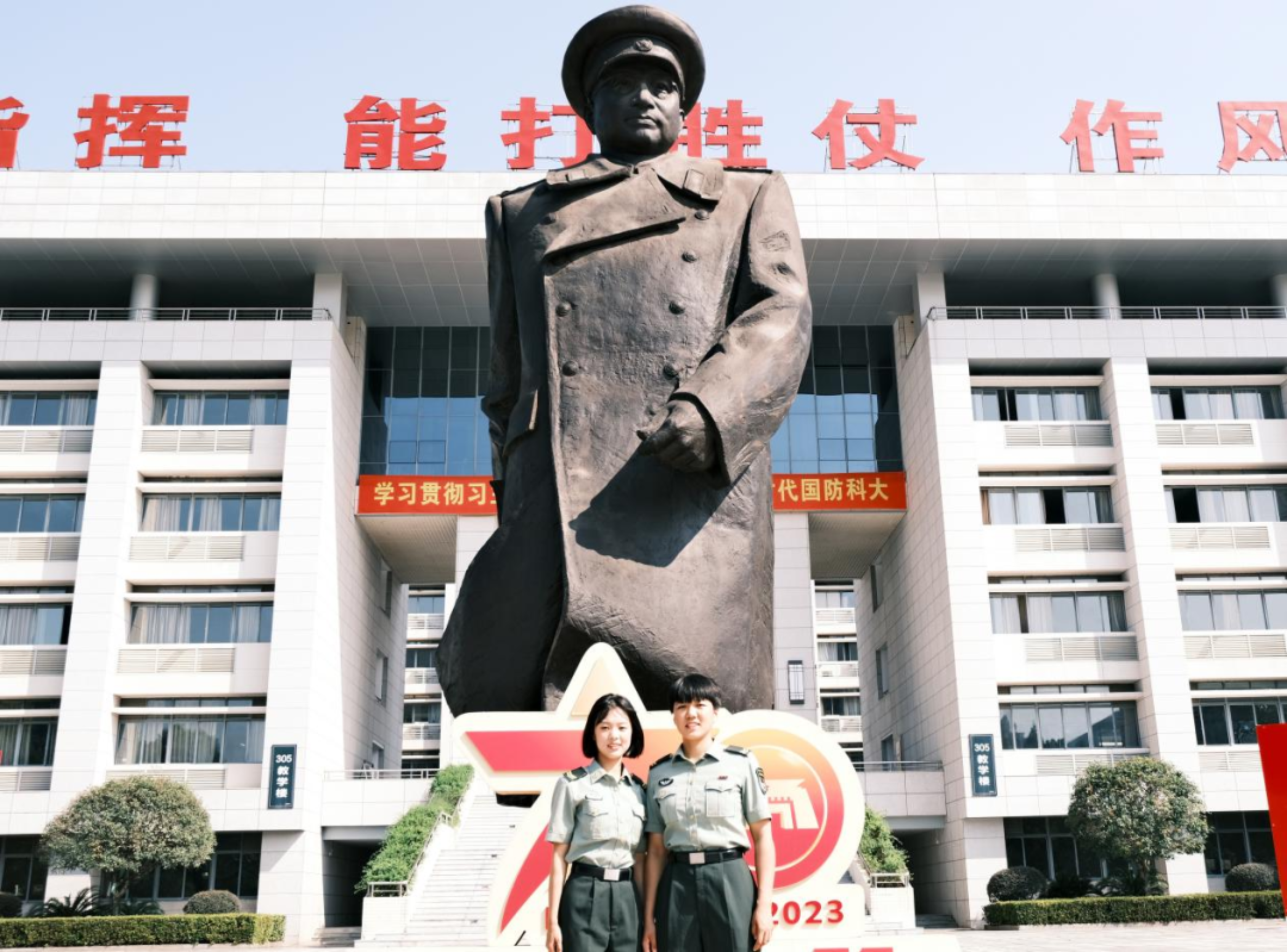 陈赓大将的雕塑屹立在广场中央,路过的人都会被它偌大的身高所吸引,与陈赓大将拍一张合影是每一名科大人心向往之的事情。