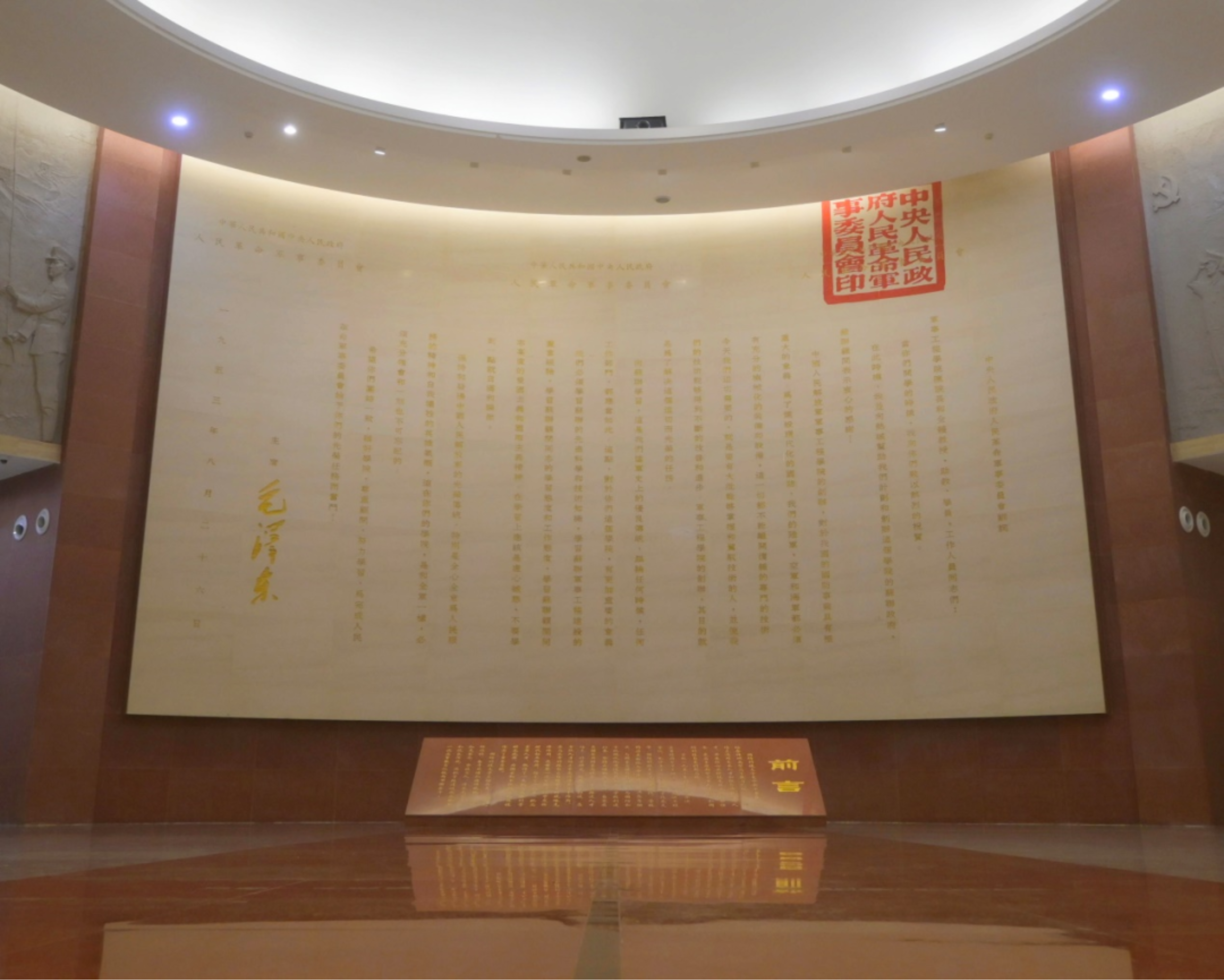 国防科大校史馆建筑面积6000余平米,通过800余块展板,2000余幅照片,1000余件实物,50多部影像资料,客观、全面、生动地展现了学校自“哈军工”时期以来,七十年的光辉岁月与风雨兼程。