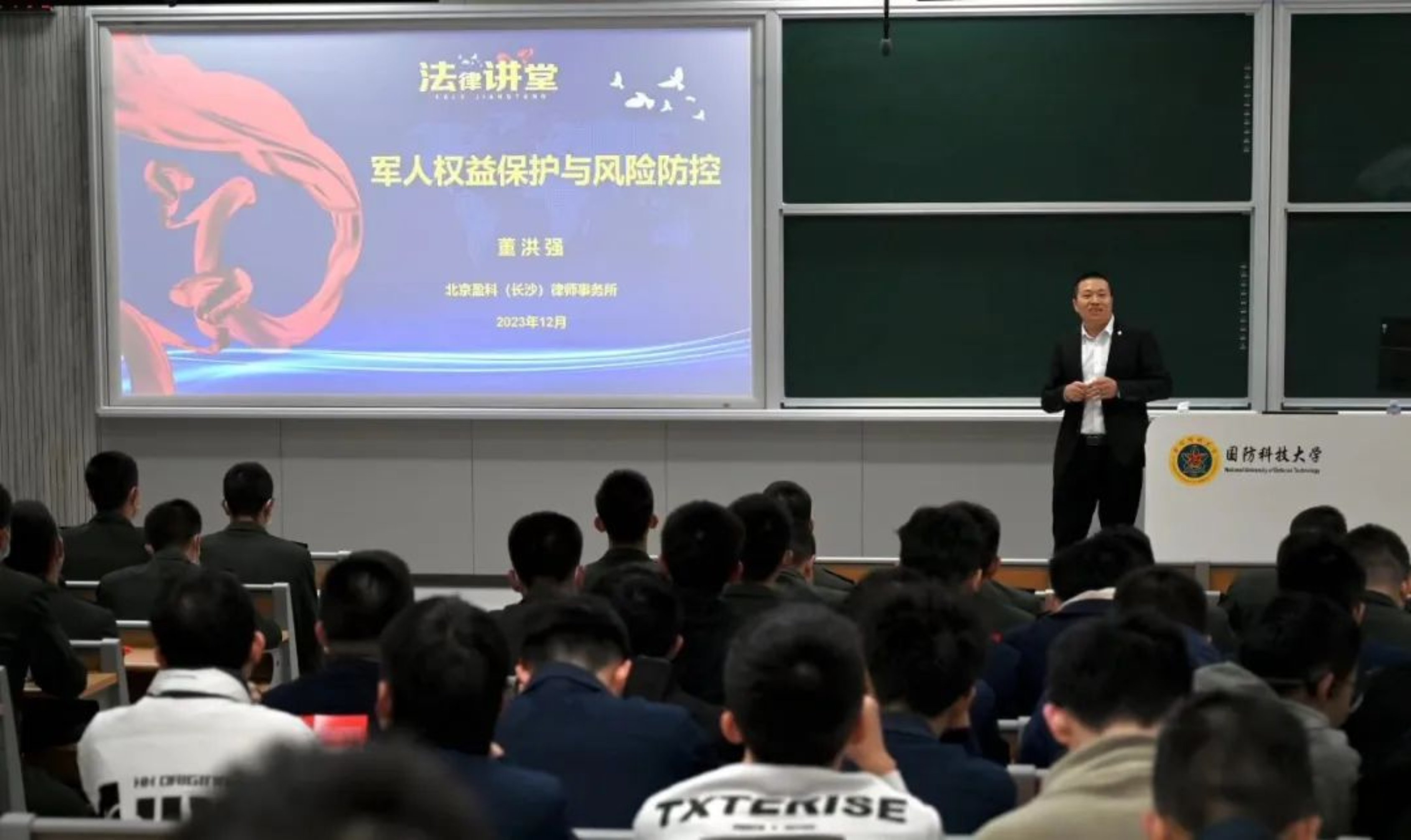 为推动反诈骗知识进学校,增强学生反诈骗意识,全国法治宣传工作先进工作者刘军应邀走进电子科学学院学员某队开展讲座。刘律师以《电信诈骗要警惕,防骗知识要升级》为主题,切合新时代大学生实际,用通俗易懂的语言和诙谐幽默的讲解方式,将复杂难懂的法律知识具象化,给学员们带来了深深的启发。