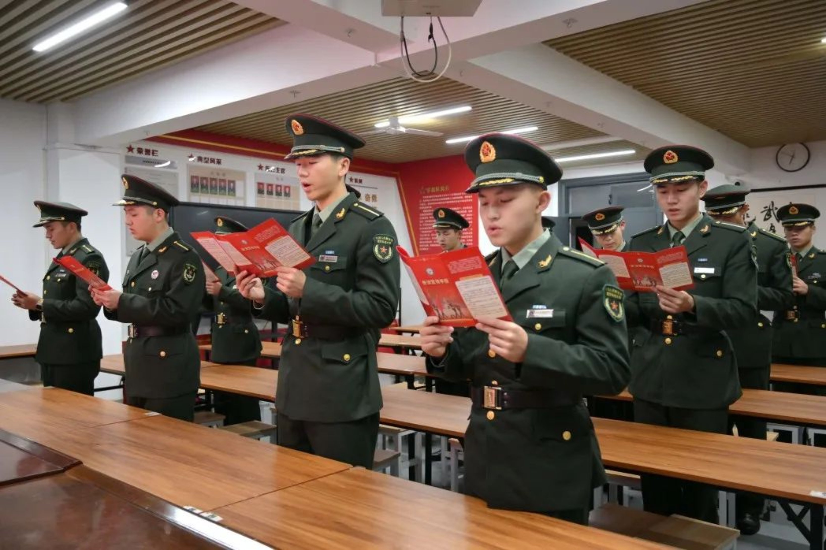 “《中华人民共和国宪法》是中华人民共和国的根本大法,规定拥有最高法律效力......”某学员队内,学员集体诵读宪法条例。在一字一句的朗读中,学员们对宪法有更直观、更深刻、更深层次的了解,让法治观念驻心间。