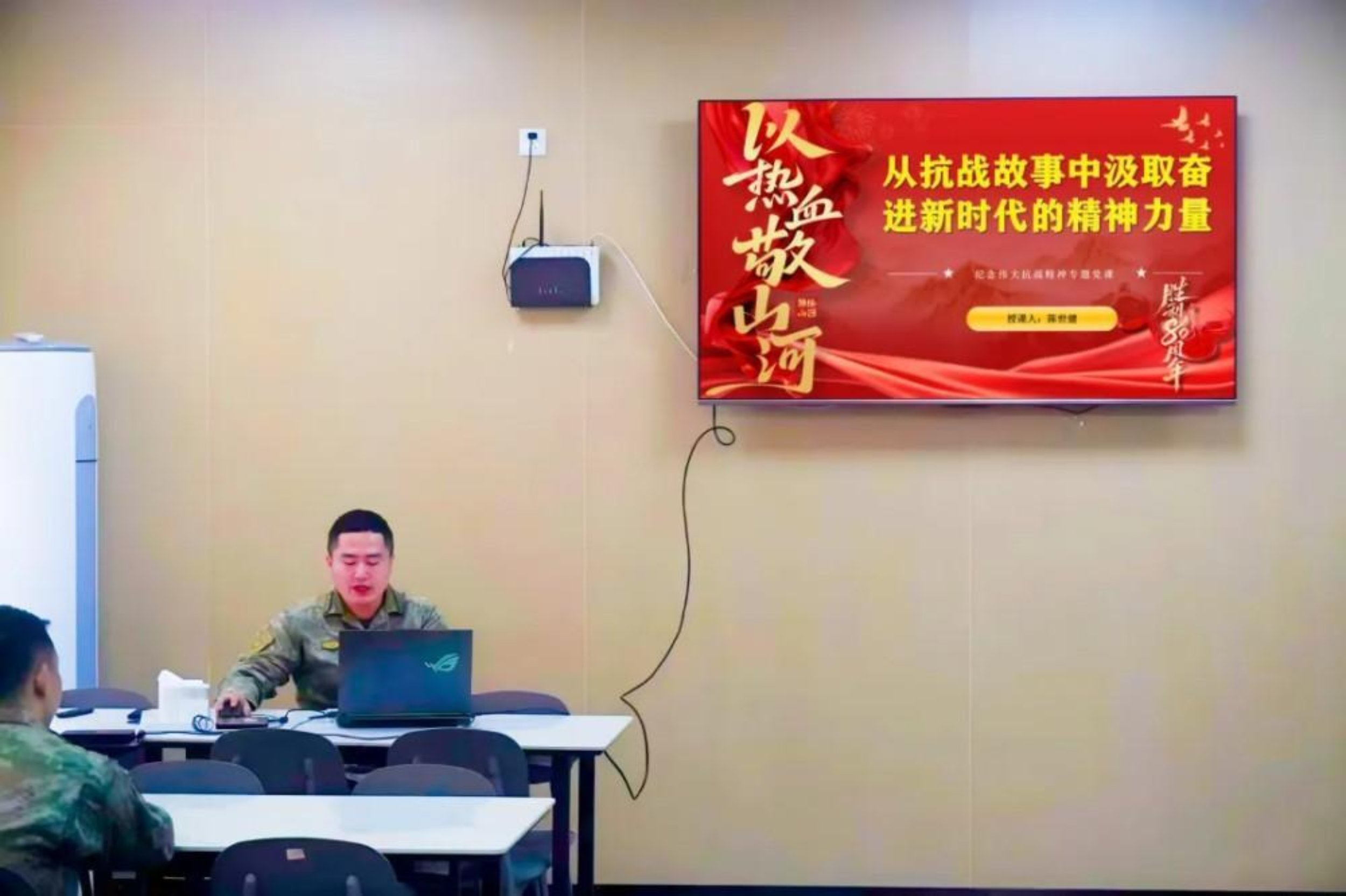 近日,通信连以 “从抗战故事中汲取奋进新时代的精神力量” 为主题,组织开展专题党课学习。课堂上,一个个感人至深的抗战故事徐徐展开,一张张催人泪下的纪实图片生动呈现,共同传递出跨越80年的时代号召——赓续传承伟大抗战精神,奋进建功新时代新征程。