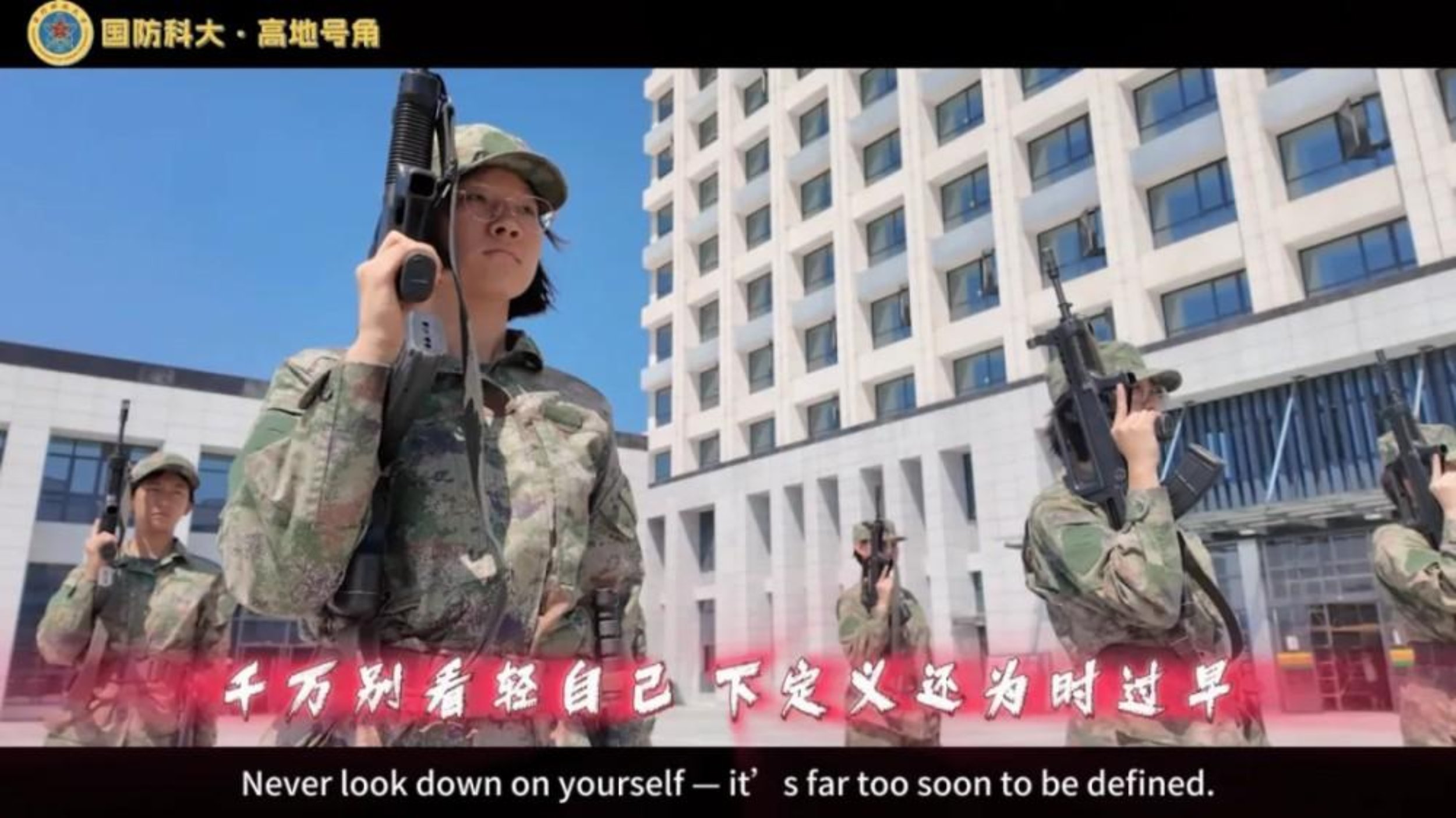 《新训日记》取材新训经历,记录从青涩到坚毅的蜕变;《逐梦高地》作为足球联赛主题曲,勾勒绿茵场上的拼搏身影,诠释团结奋进的体育精神;《幸福科大》以校园美食为切入点,将求知探索与生活温情相融,展现军校生活的多元风采;《送你一朵小红花》用阿卡贝拉形式,礼赞学子淬火成钢的成长历程。从训练场上的汗流浃背到实验室里的挑灯夜战,从社团活动的活力绽放到大学校园的温情日常,歌曲里的每一个场景,都藏着科大人的青春模样。