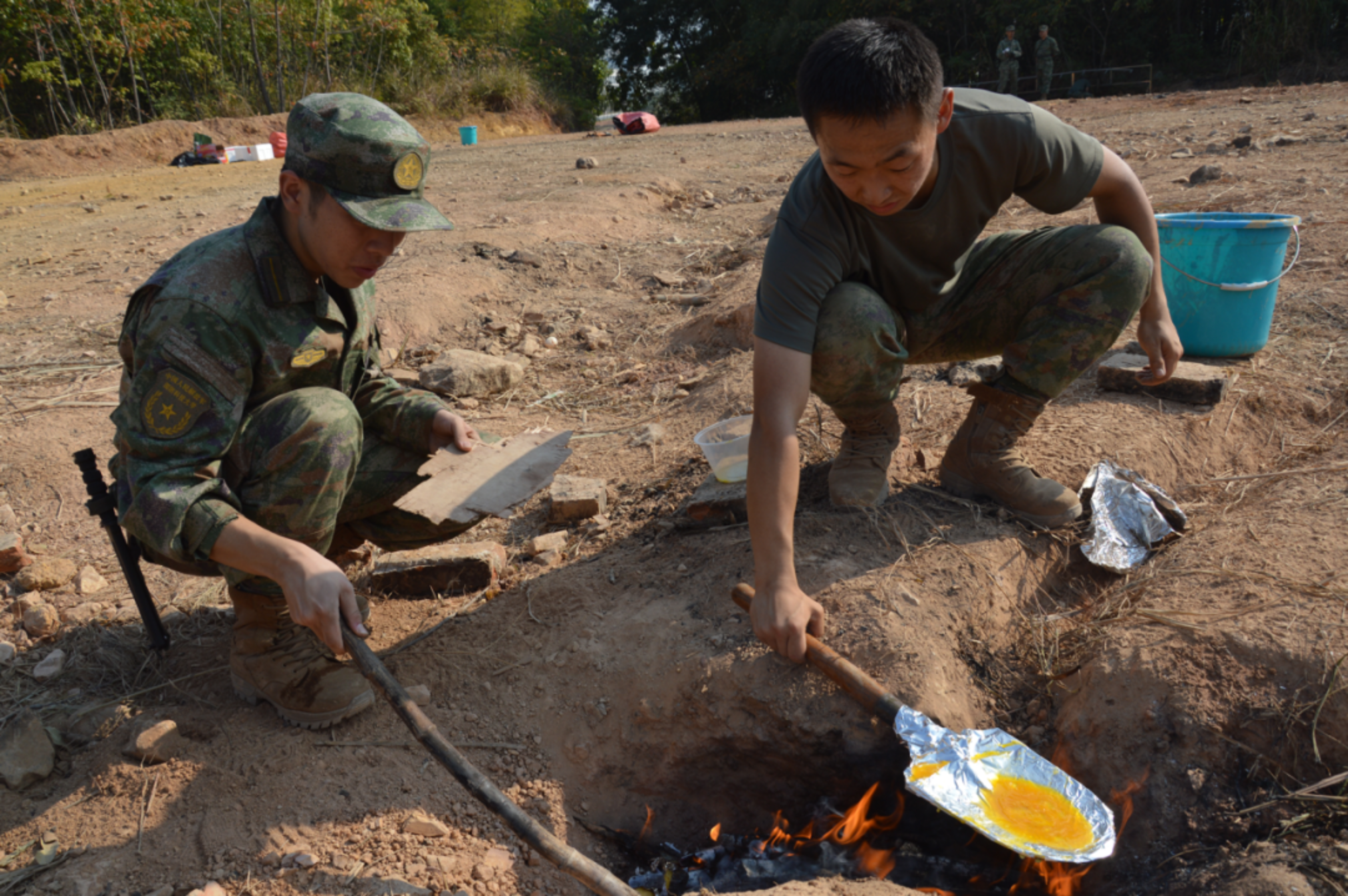一把工兵铲,构筑掩体、帮助搭建临时帐篷等都不在话下,甚至还可以作为临时的“锅”,用来煎蛋、炒菜,大大提高了学员在野外拉练的效率和生存能力。