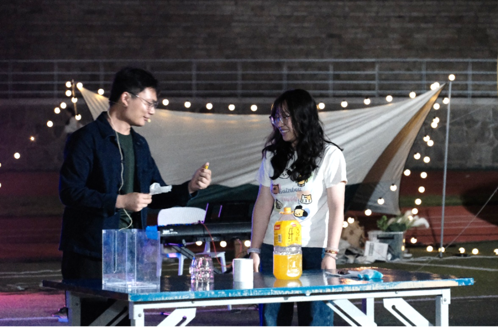 舞台上,魔术表演精妙绝伦,引得现场观众阵阵呼声;109爱乐乐队的管弦乐演奏以恢弘旋律彰显科大学生的艺术素养;“磐石”健身俱乐部的健身表演用挺拔身姿与力量之美,生动诠释科大人刚毅坚卓、奋发向上的精神气质;“高地”音乐创作室的原创歌曲《新训日记》则以真挚情感记录新生的成长蜕变。