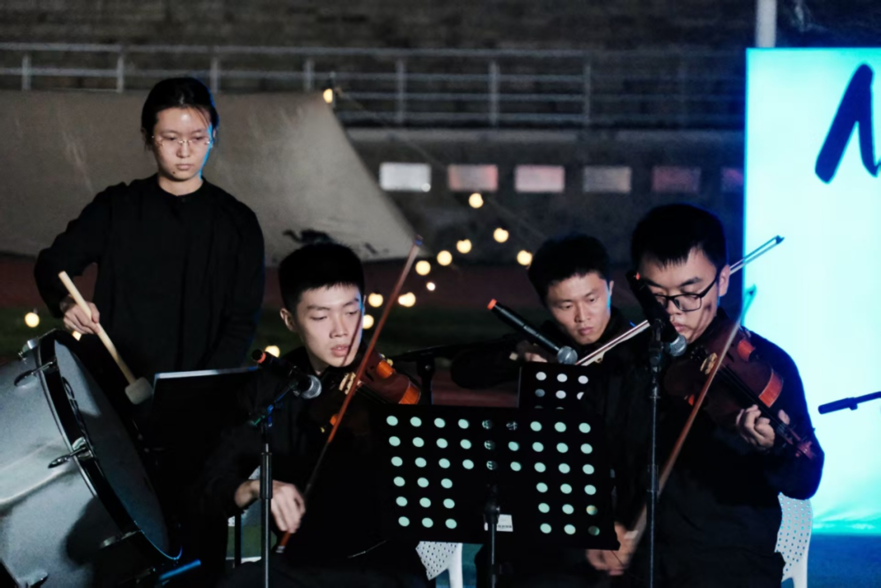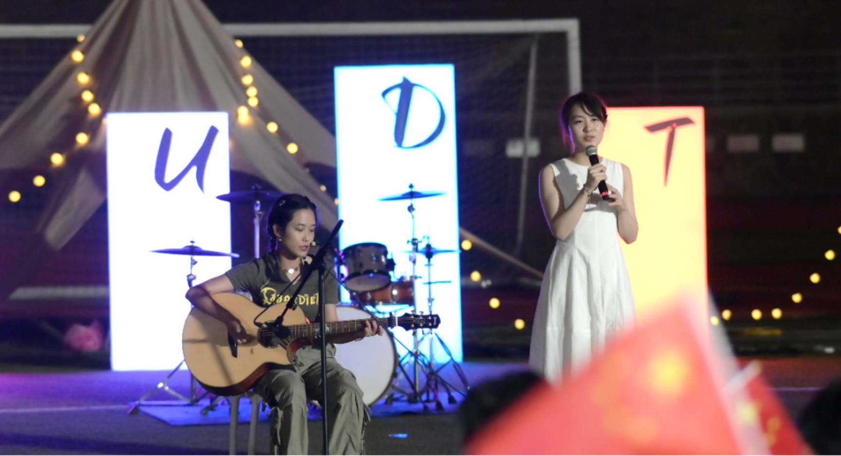 舞台上,星火乐队以动感节奏传递勇往直前的拼搏态度;吉他弹唱温婉细腻,清澈的嗓音裹挟着桂花淡淡的芳香,诉说着青春故事,勾起无限深思;歌曲串烧将不同风格的旋律紧密串联,唤起青春回忆与未来憧憬,引发全场情感共鸣。