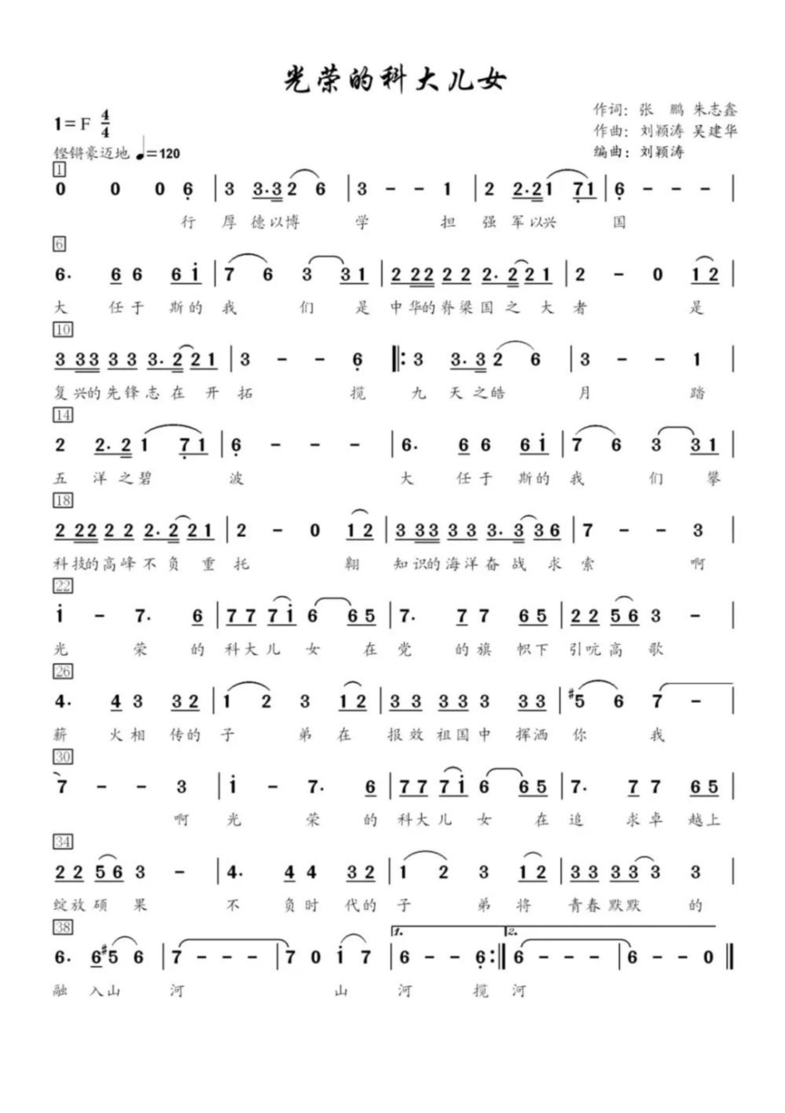 《光荣的科大儿女》刻画了国防科大人扎根科研、矢志报国的精神群像。歌词从校训“厚德博学、强军兴国”出发,将个人理想融入强国强军的宏伟征程。“揽九天皓月,踏五洋碧波”,不仅是科研探索的浪漫写照,更象征着科...